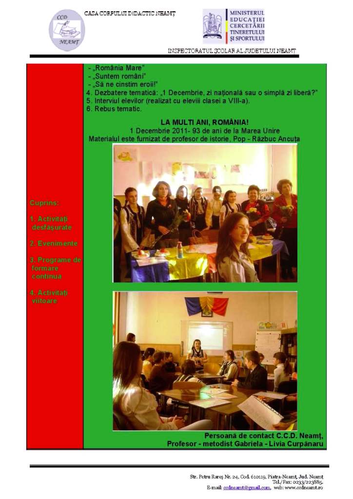 Buletin informativ C.C.D. Neamt – Decembrie 2011
