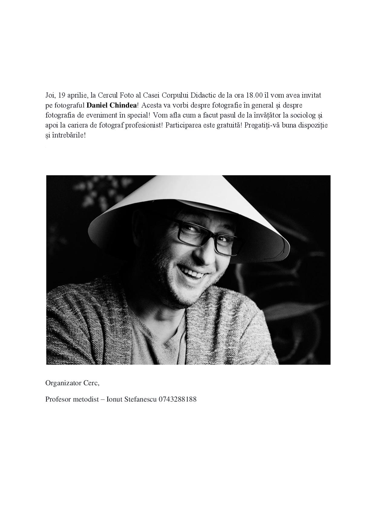 Sunteți aici: Acasă » INVITAŢIE Cercul Foto al Casei Corpului Didactic » Anunt Daniel Chindea la CCD
