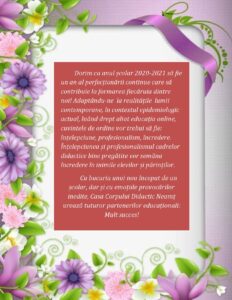 Sunteți aici: Acasă » Activitati 2020-2021 » CUVÂNT DE DESCHIDERE ÎN ANUL ŞCOLAR 2020-2021