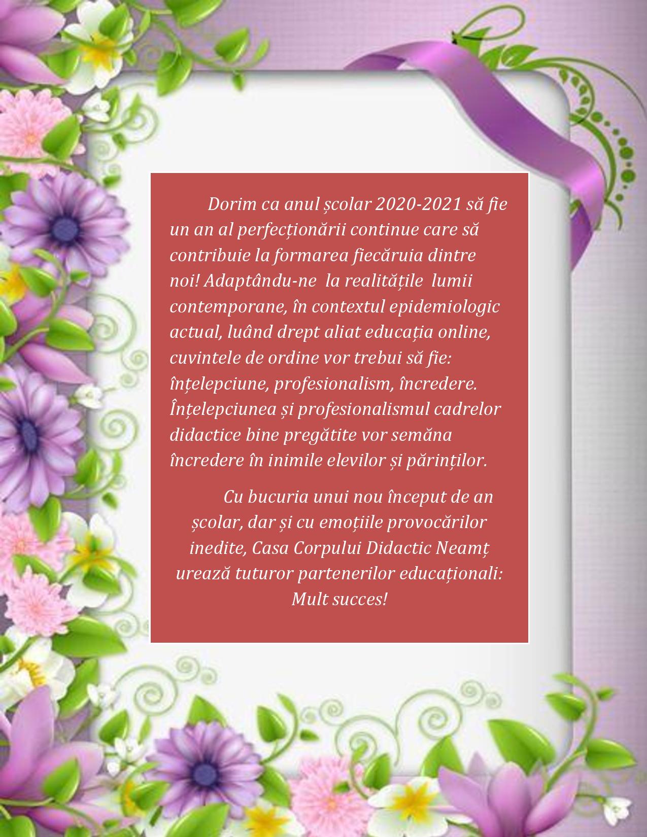 CUVÂNT DE DESCHIDERE ÎN ANUL ŞCOLAR 2020-2021